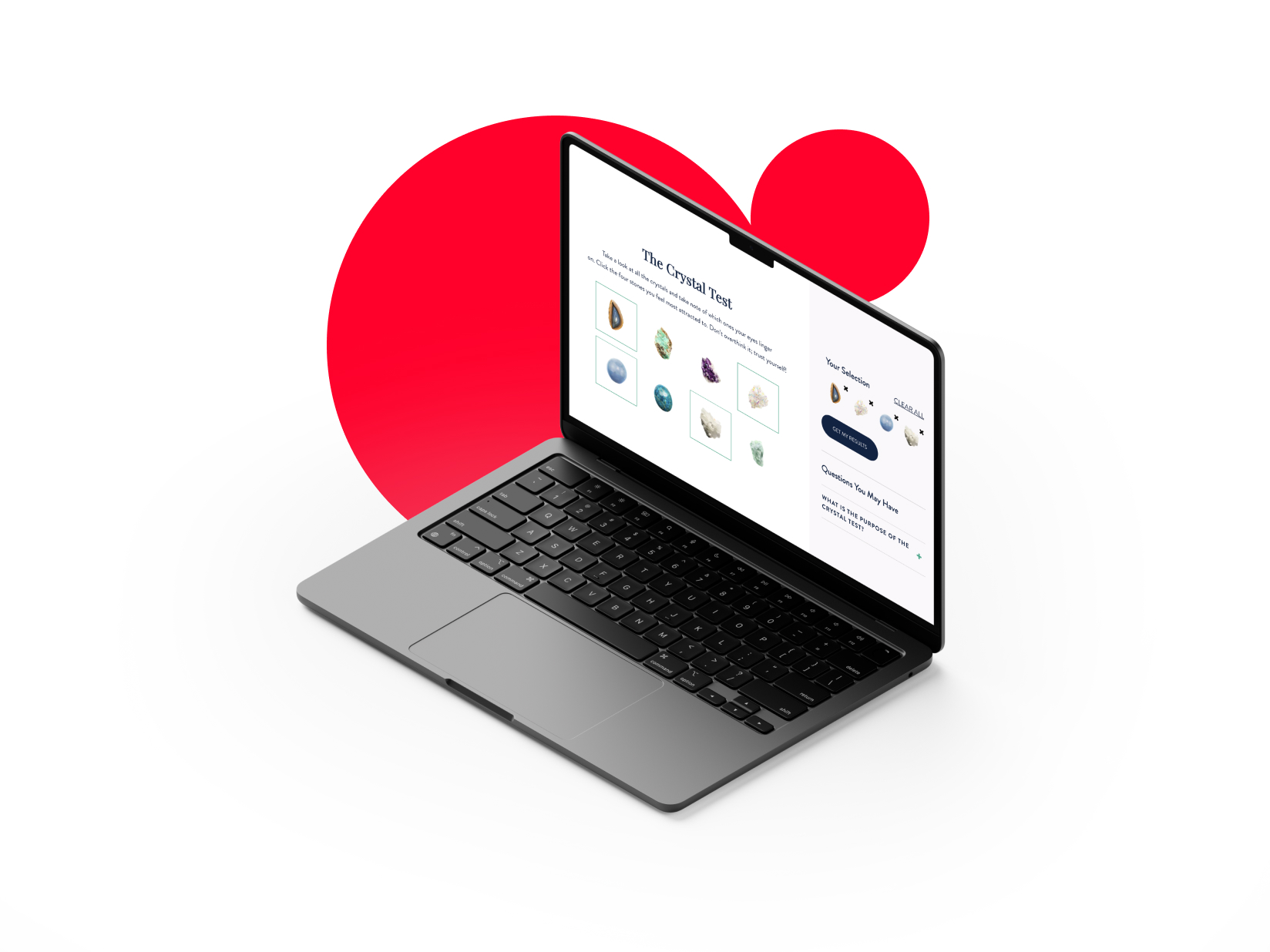 Within the site, we also developed two custom applications. The first is a crystal survey that allows shoppers to “connect visually with the crystals they’re most drawn to” by selecting imagery of various stones that each contain a unique property. From there the grouping of selected crystals is analyzed and information about each is provided as well as the opportunity to make a purchase.