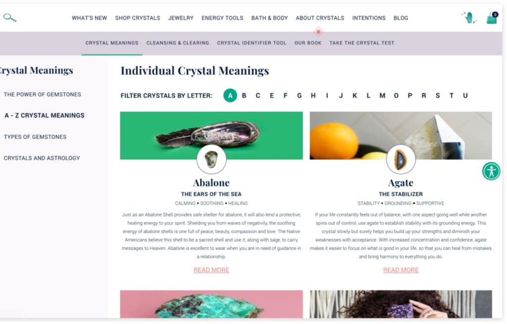 Our second tool, the “crystal identifier,” is an image-recognition AI tool that allows the shopper to take or upload a picture of any stone, crystal or gem. Our tool then cross-references millions of photos across the internet to decipher what stone the crystal is. This gives shoppers the ability to find a stone/crystal they don’t know the name of, to identify it for purchase.