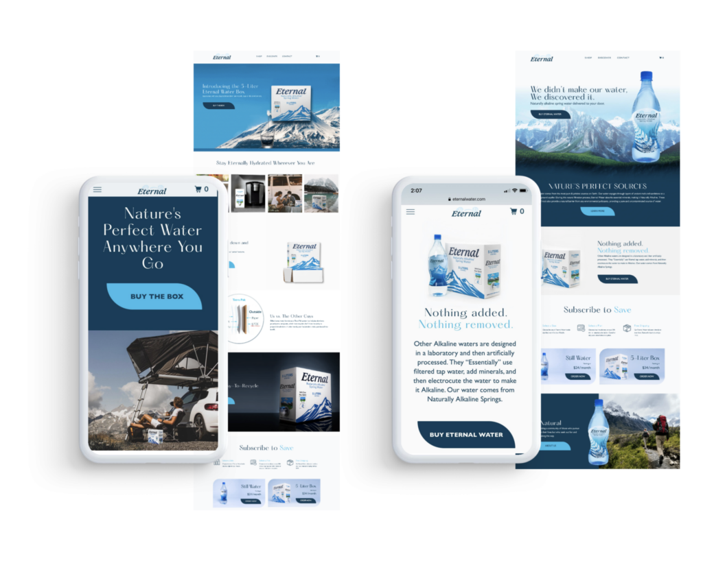 One of our core channels was the Eternal Water website. We updated the site with our new brand identity – elevating the content, refreshing graphics, and revising our messaging across pages. We also optimized the website’s UX/UI on both desktop and mobile versions to improve overall customer experience online.