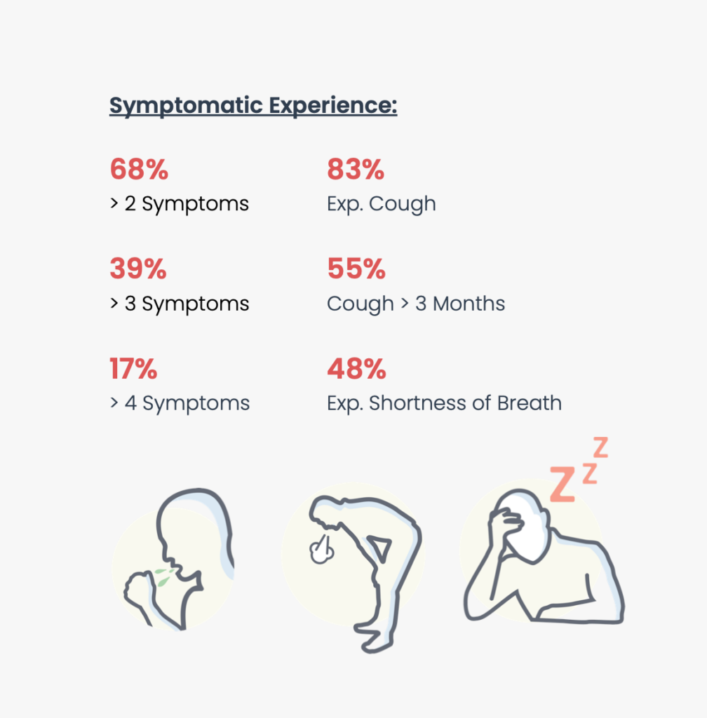 Of the several thousand individuals that took the LungStory symptom survey we learned some valuable insights into who our campaign reached and what their symptomatic experience entailed. Overall, LungStory was highly effective at finding people with chronic and potentially serious respiratory health symptoms.