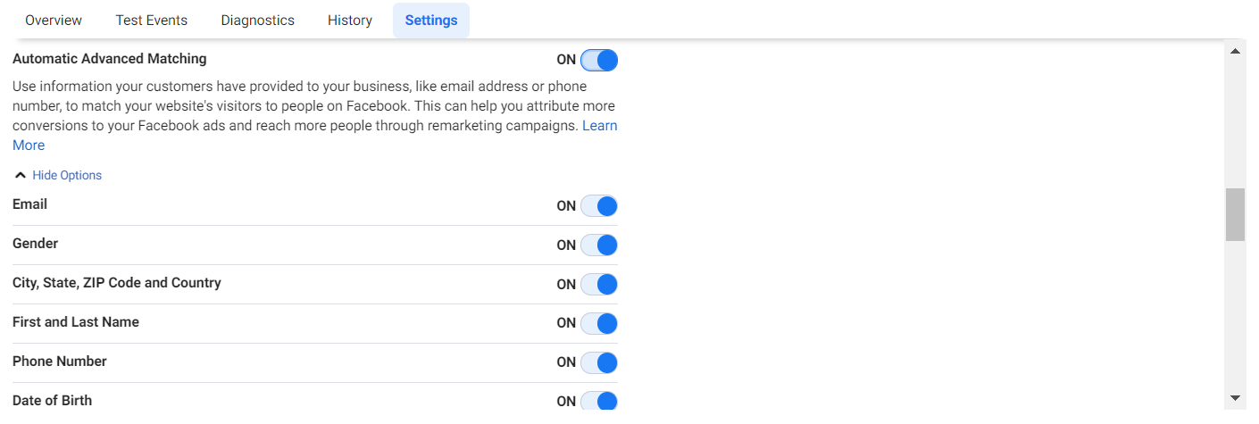With Advanced Auto-Matching, Facebook will look for common identifiers such as first name, last name, and e-mail address and match that information with users that clicked on your ad to attribute the conversion with your ad.