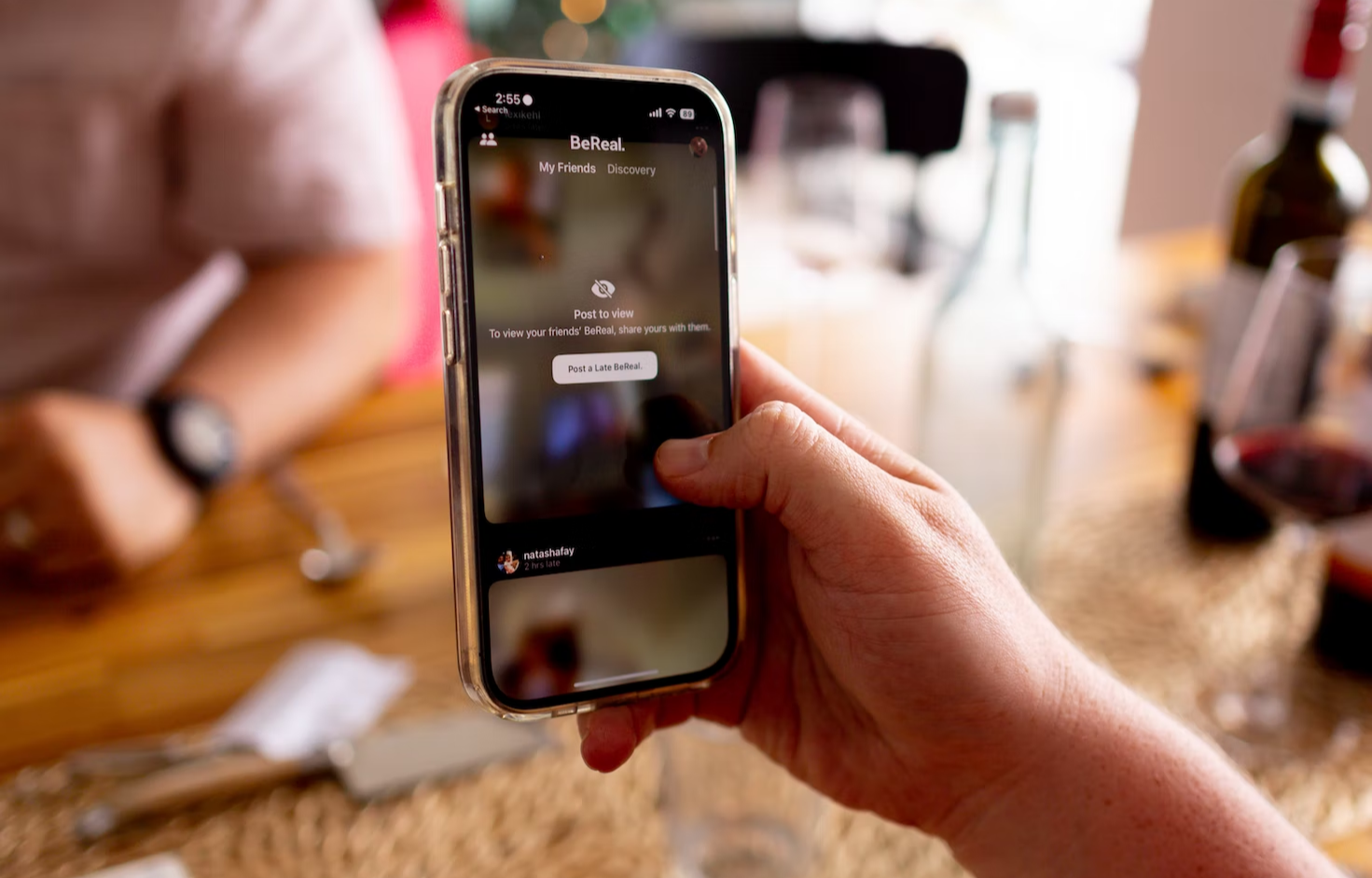 Each day at a different time, the BeReal app notifies you and your friends to get ready to post. You get a two-minute notice, and then the posting begins. But when you take a photo, the app uses the front and back cameras to create your post to show you in realtime as well as your surroundings or where you are. Unlike other social media apps, you don’t use hashtags, and while you can write a caption, you don’t have to.